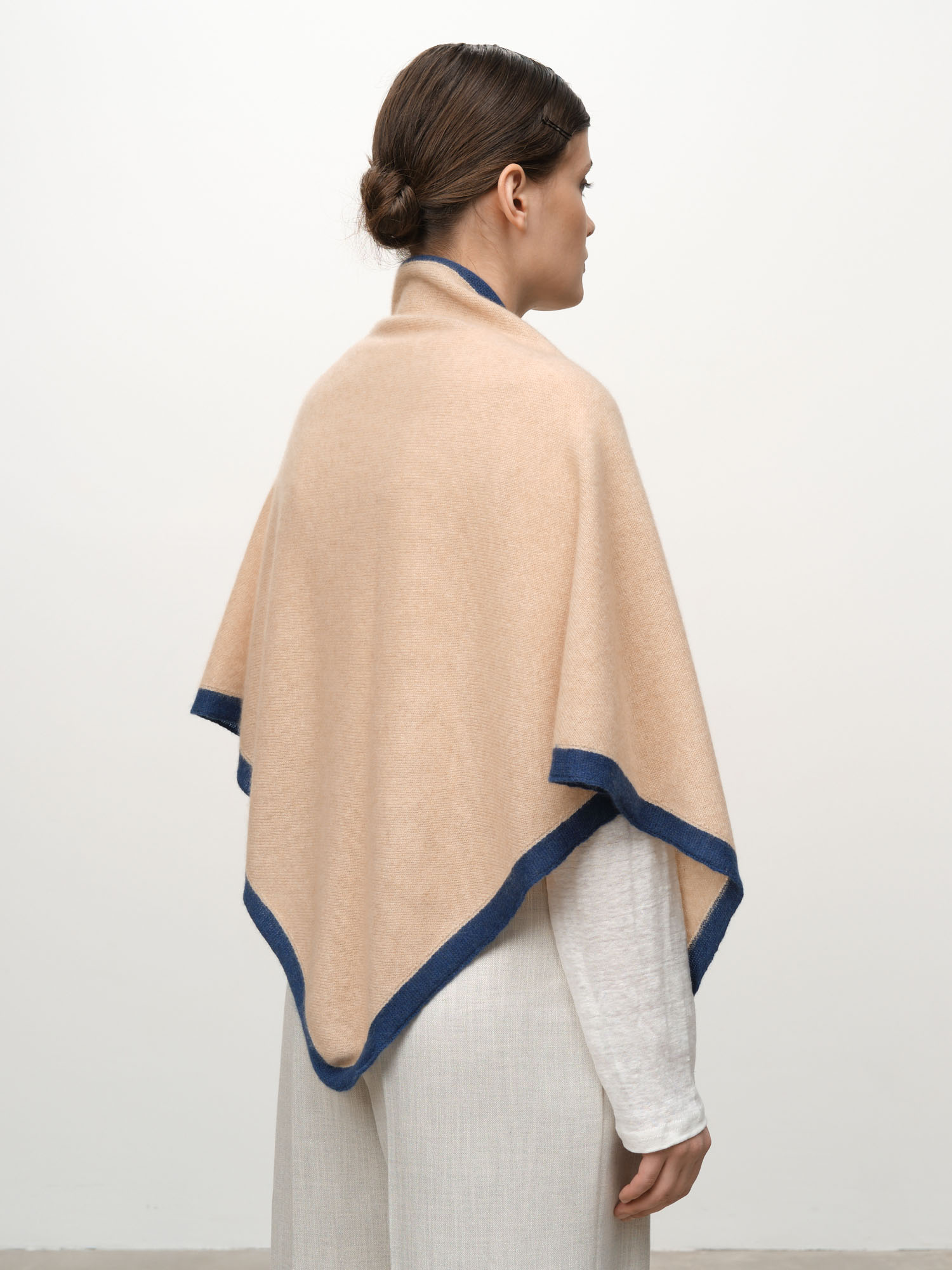 Косынка из кашемира 09103 бежевая-голубая